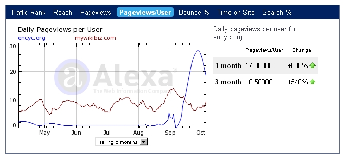 Strange increase in September 2010 pageviews per visitor on Encyc.org