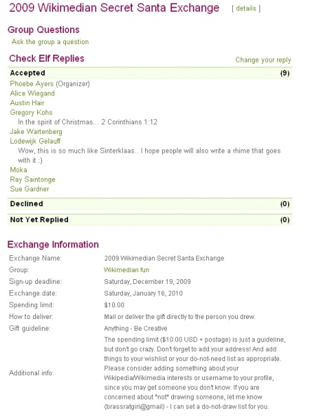 | current | 18:52, 15 December 2009 | 583 × 790 (146 KB) | MyWikiBiz (talk | contribs) | Wikimedian Secret Santa, from Elfster.com. |
