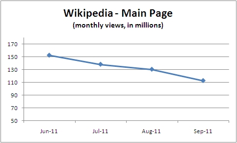 current | 18:39, 1 October 2011 | ![]() | 483 × 291 (33 KB) | MyWikiBiz (talk | contribs) | English Wikipedia's decline in Main Page views. |