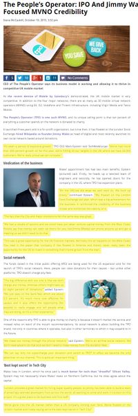 Revision as of 14:59, 23 October 2015 by MyWikiBiz (talk | contribs) (An example of TechWeekEurope being used to carry a public relations message from a principal of a publicly-traded company. The yellow highlighted portions of the article are direct quotes from The People's Operator executives. The portions without hi...)